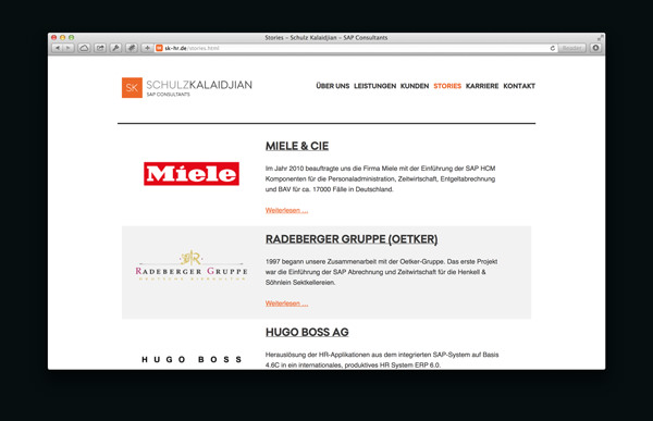 Für die SAP Experten der Schulz-Kalaidjian GmbH entwickelten wir einen neuen visuellen Auftritt inkl. Schriftzug, Geschäftspapieren und einer Webseite. Schlicht, klar, responsive.